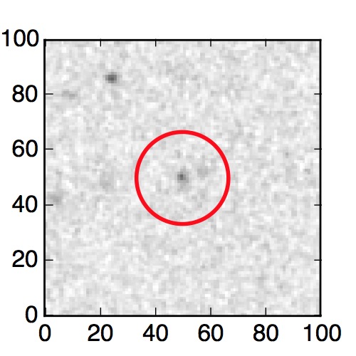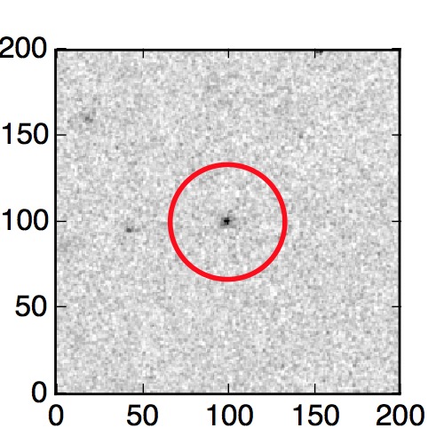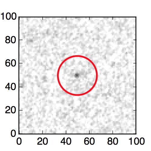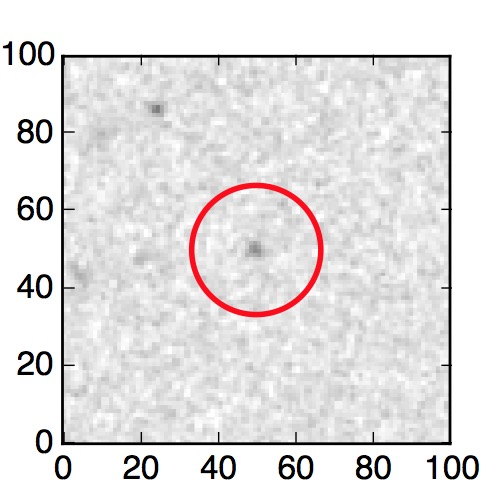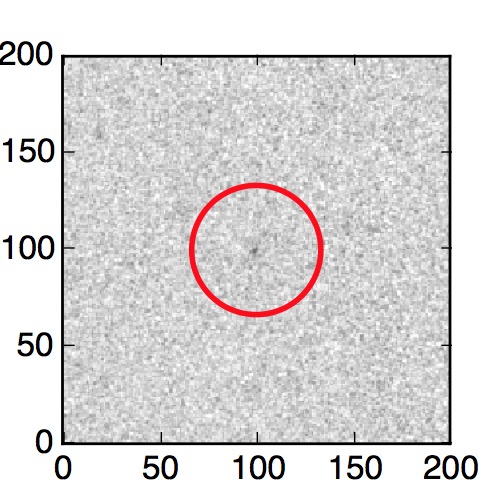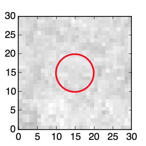 The red circle in the various panels is 1" in radius. The images are 6"x6".