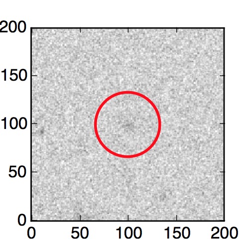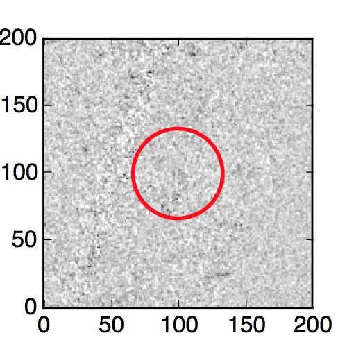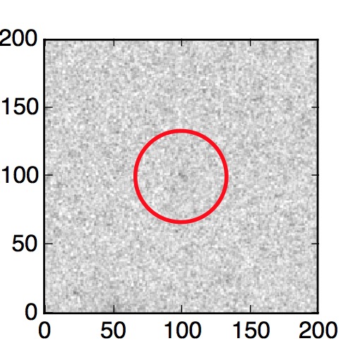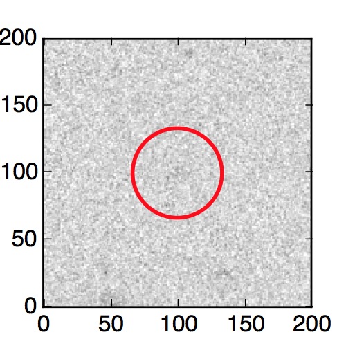 The red circle in the various panels is 1" in radius. The images are 6"x6".