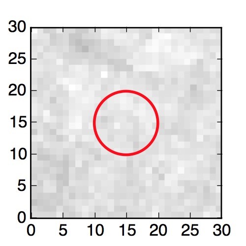 The red circle in the various panels is 1" in radius. The images are 6"x6".