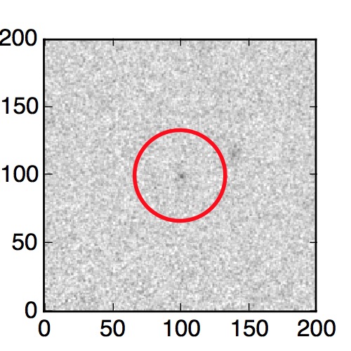 The red circle in the various panels is 1" in radius. The images are 6"x6".