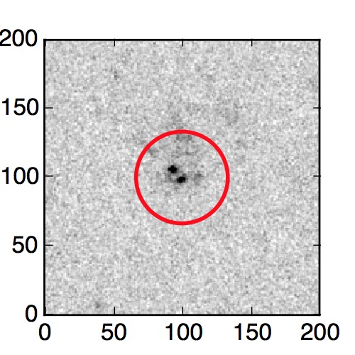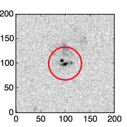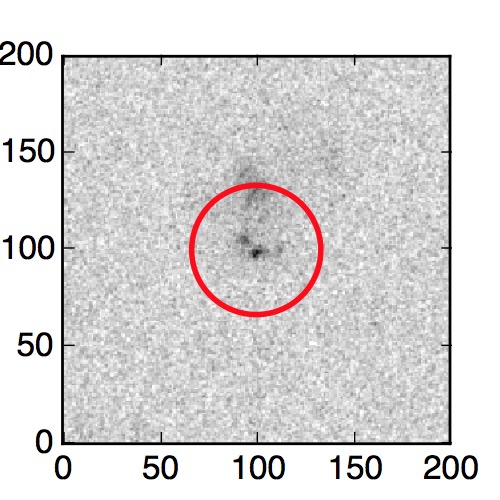 The red circle in the various panels is 1" in radius. The images are 6"x6".