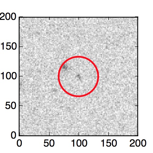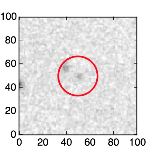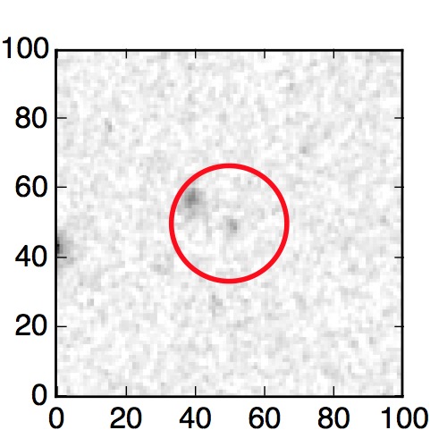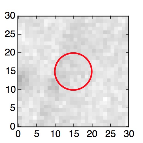 The red circle in the various panels is 1" in radius. The images are 6"x6".