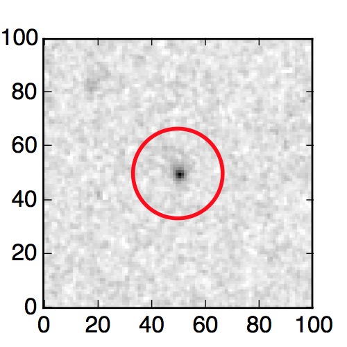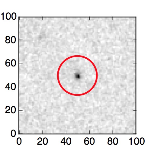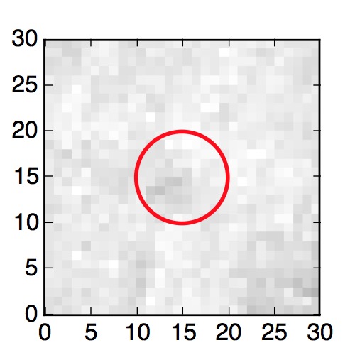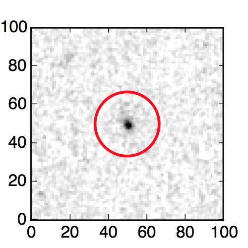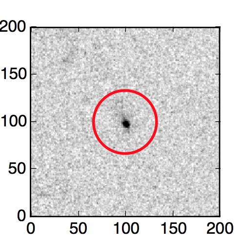 The red circle in the various panels is 1" in radius. The images are 6"x6".