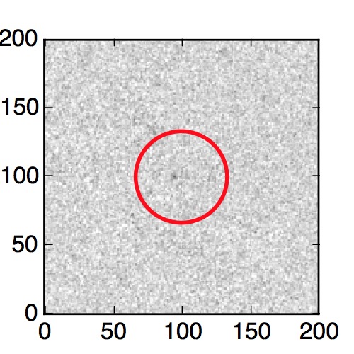The red circle in the various panels is 1" in radius. The images are 6"x6".