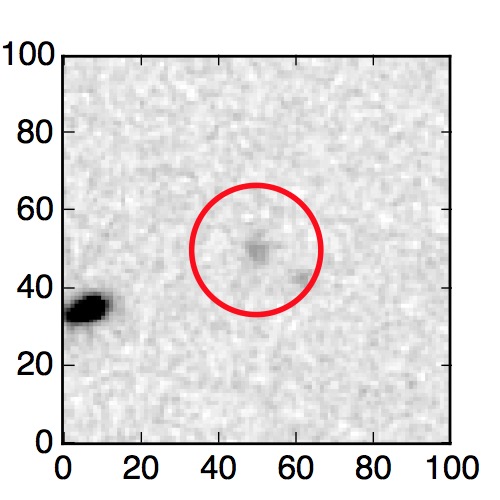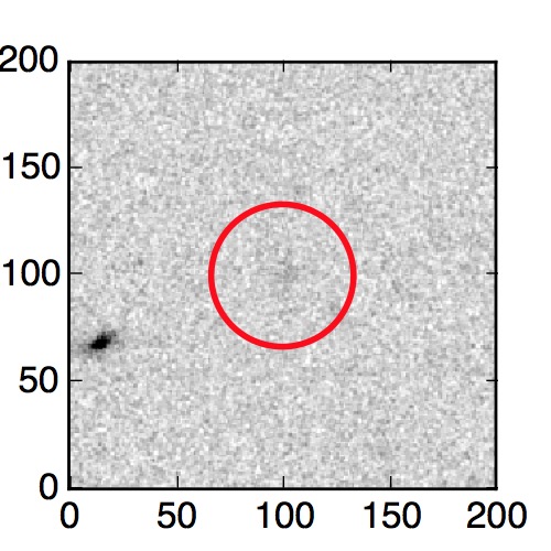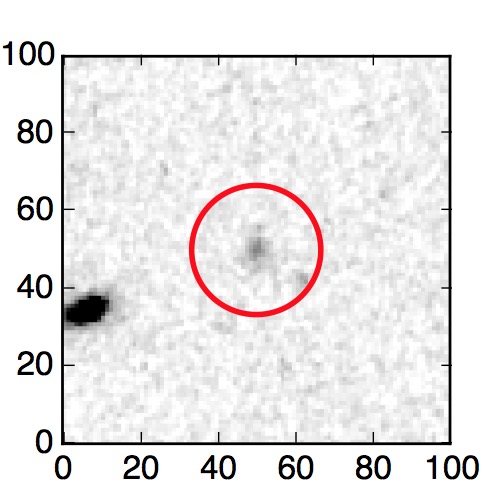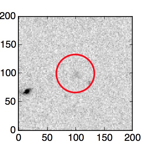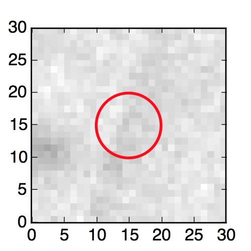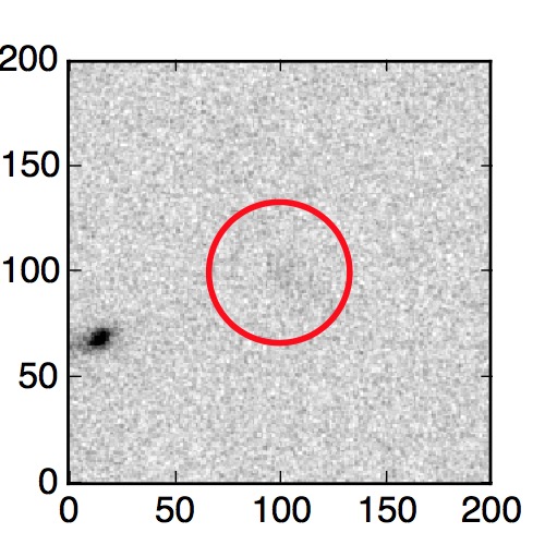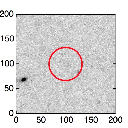 The red circle in the various panels is 1" in radius. The images are 6"x6".