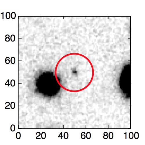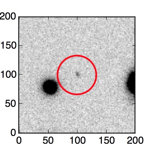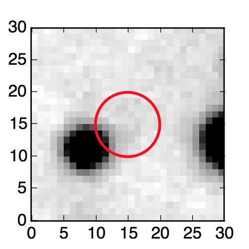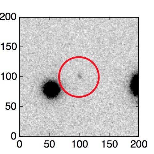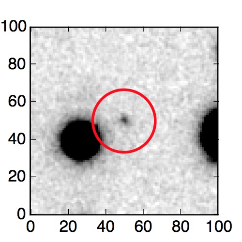 The red circle in the various panels is 1" in radius. The images are 6"x6".