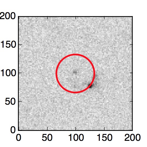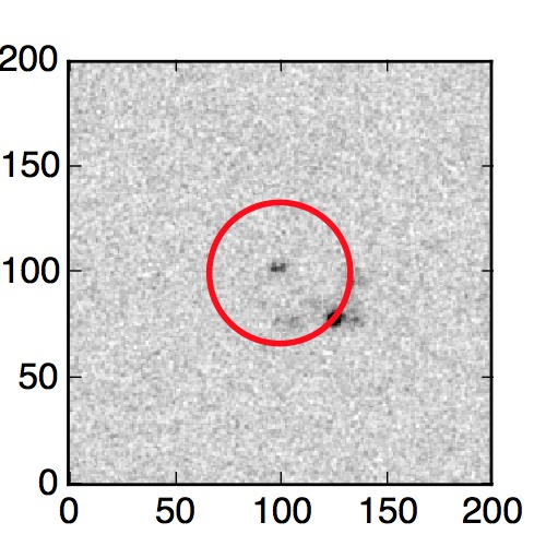 The red circle in the various panels is 1" in radius. The images are 6"x6".