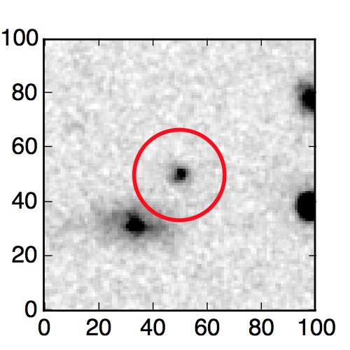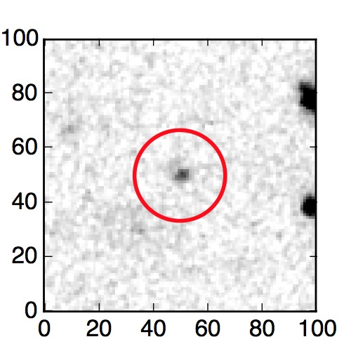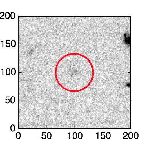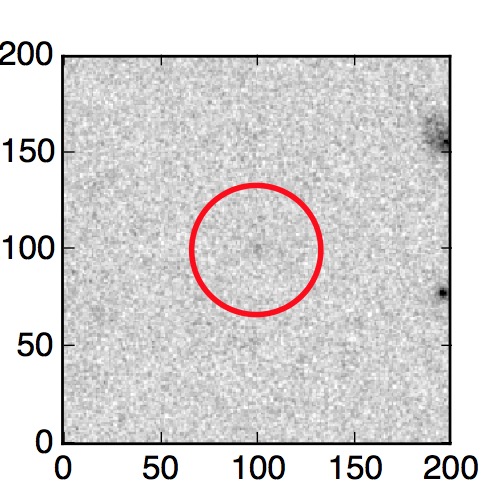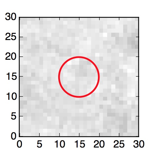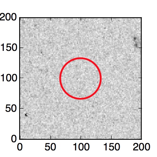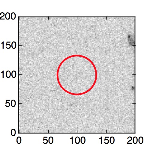 The red circle in the various panels is 1" in radius. The images are 6"x6".