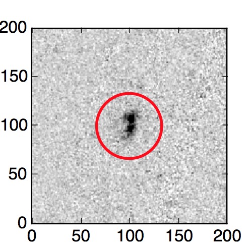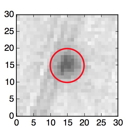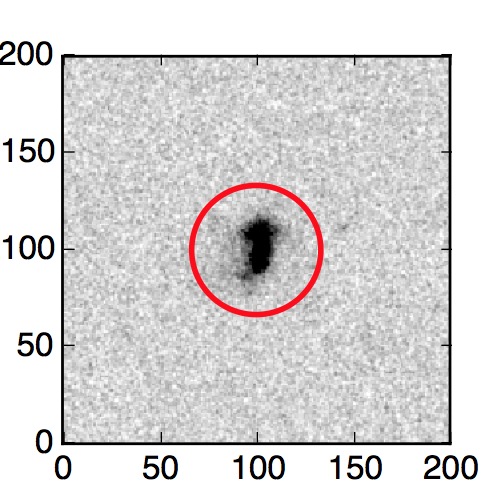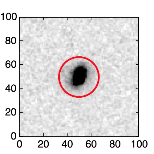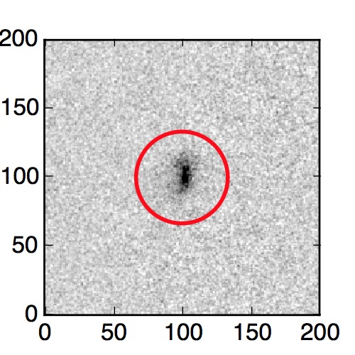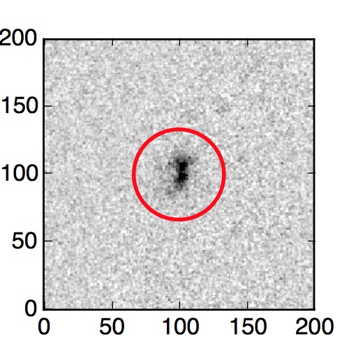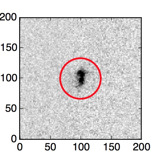 The red circle in the various panels is 1" in radius. The images are 6"x6".