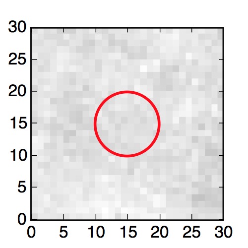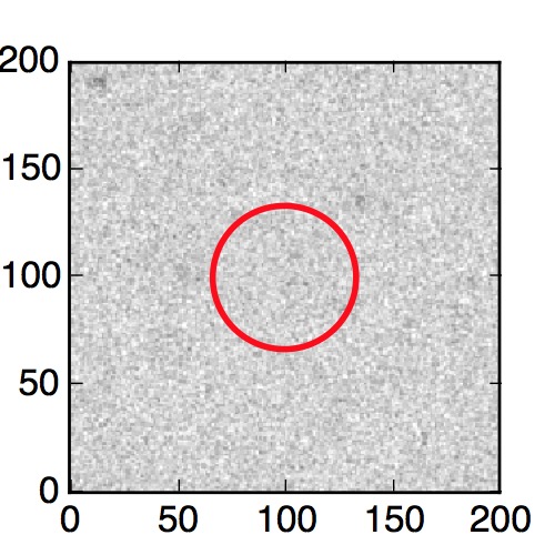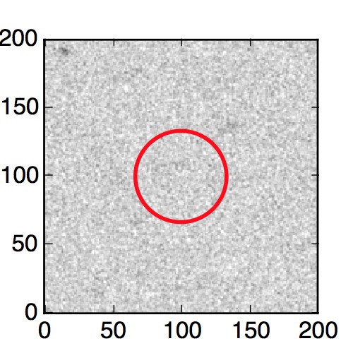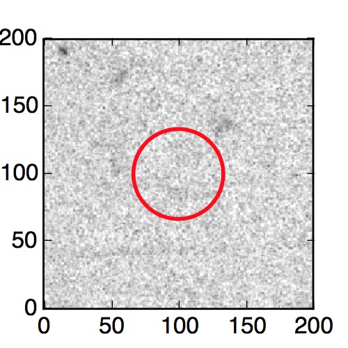 The red circle in the various panels is 1" in radius. The images are 6"x6".