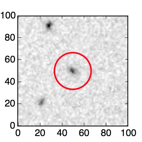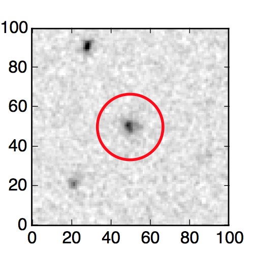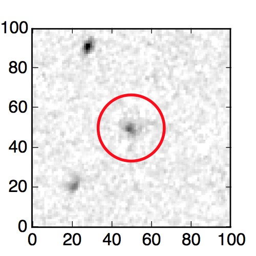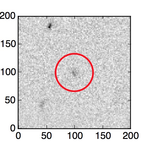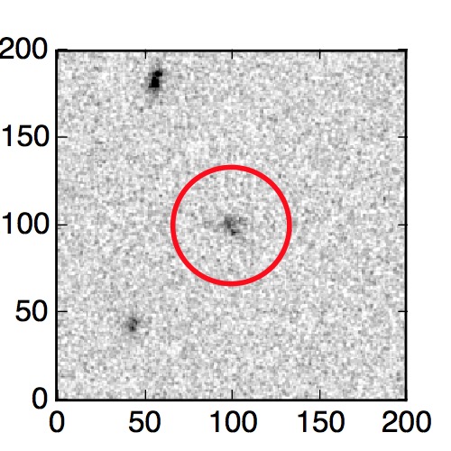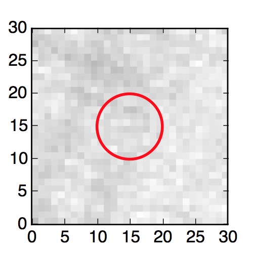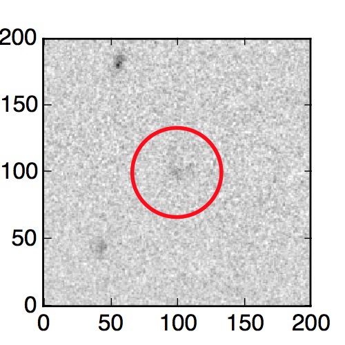 The red circle in the various panels is 1" in radius. The images are 6"x6".