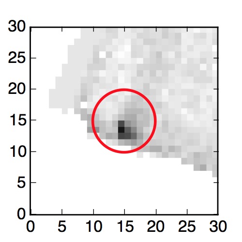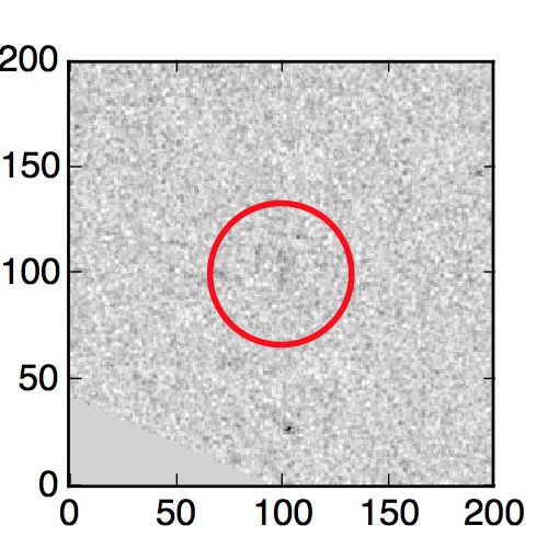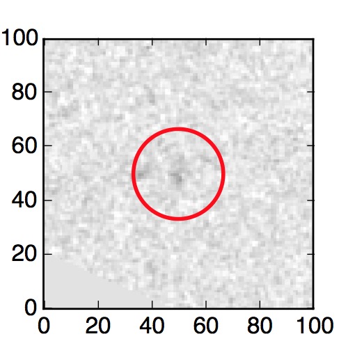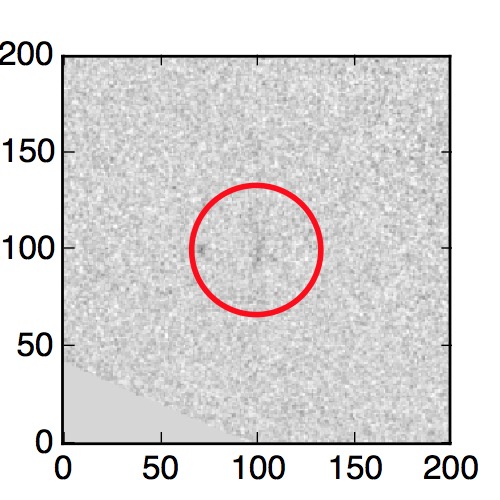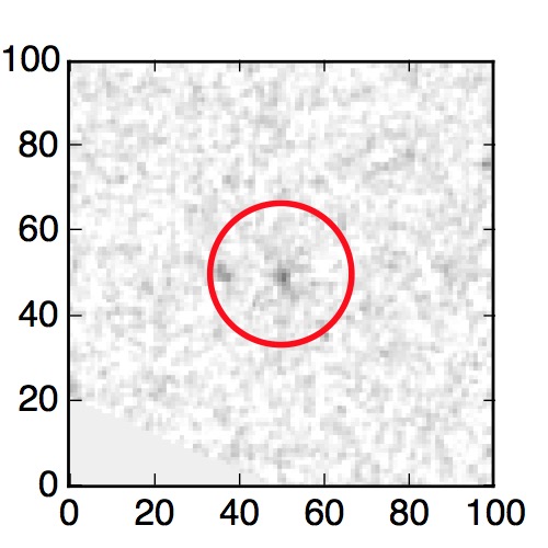 The red circle in the various panels is 1" in radius. The images are 6"x6".