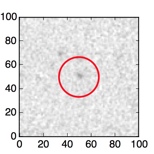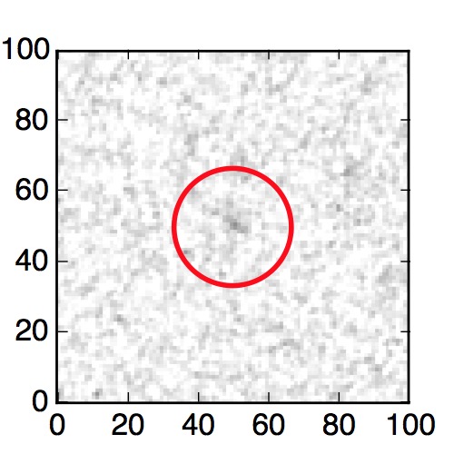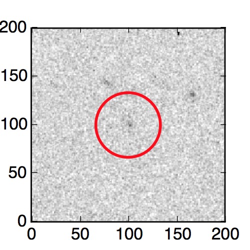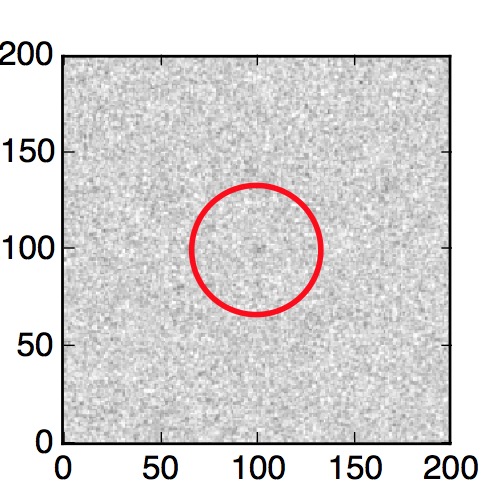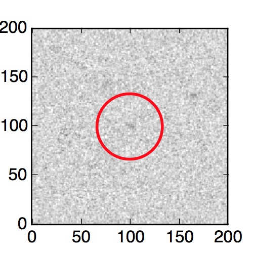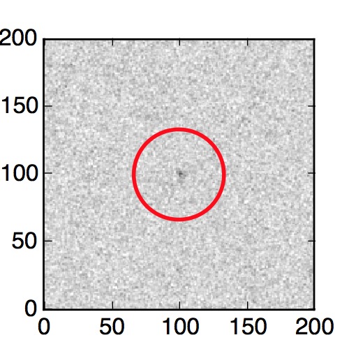 The red circle in the various panels is 1" in radius. The images are 6"x6".