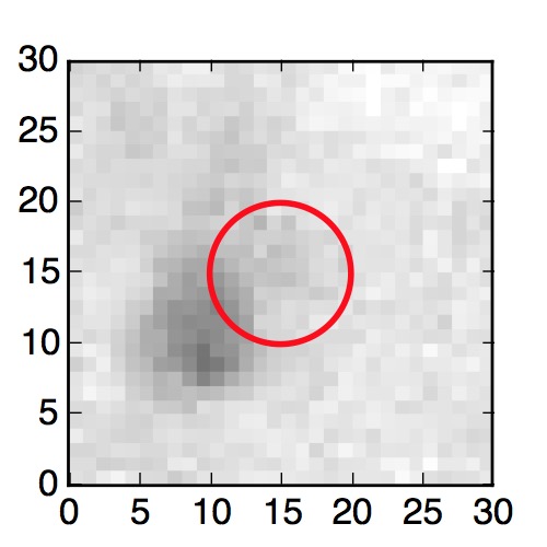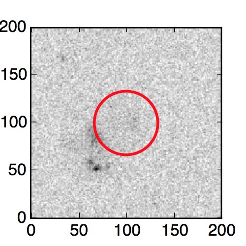 The red circle in the various panels is 1" in radius. The images are 6"x6".