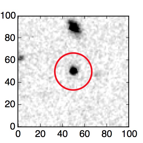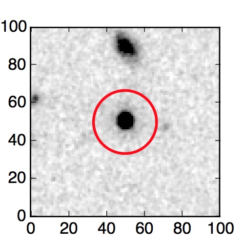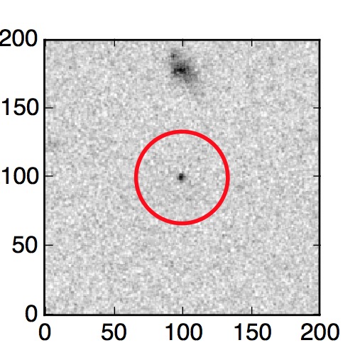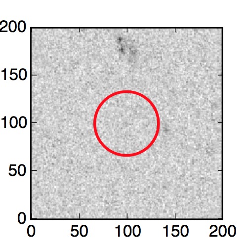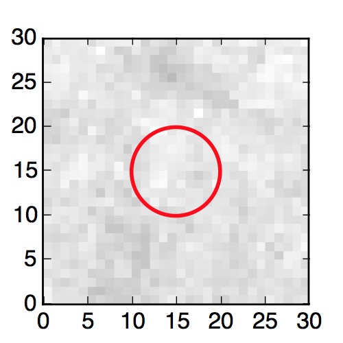 The red circle in the various panels is 1" in radius. The images are 6"x6".