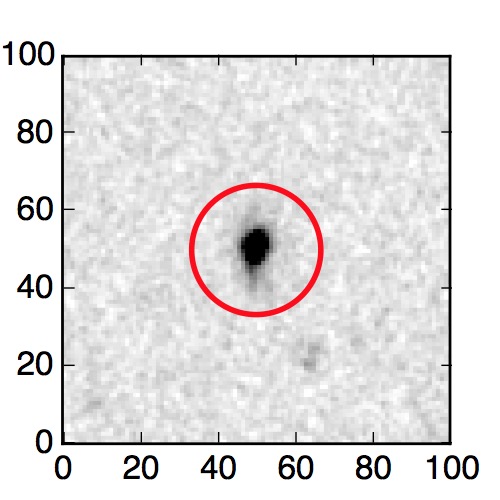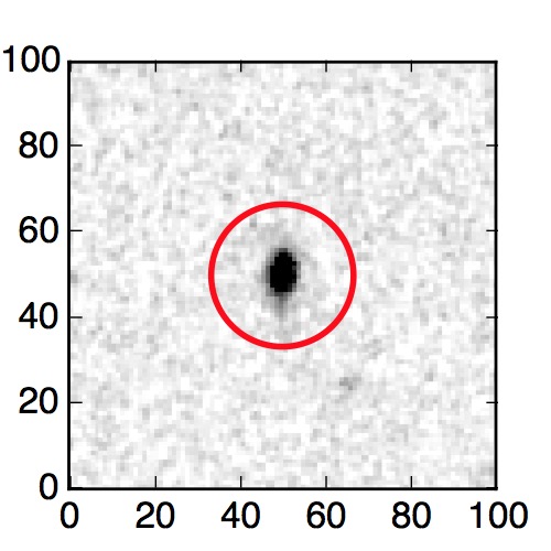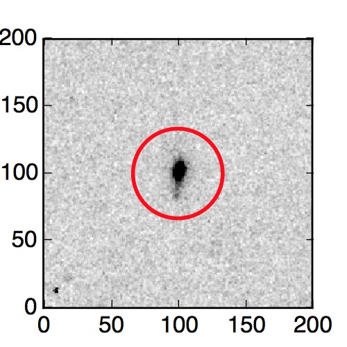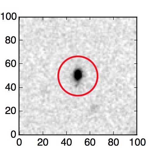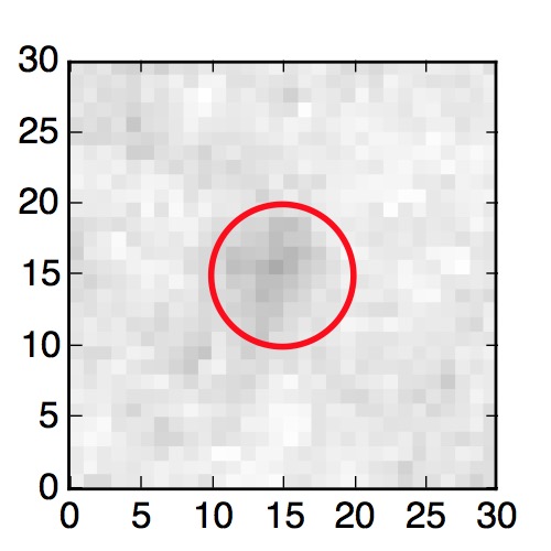 The red circle in the various panels is 1" in radius. The images are 6"x6".