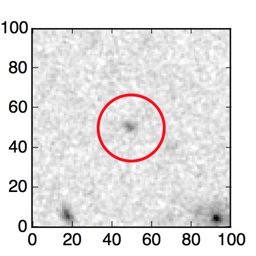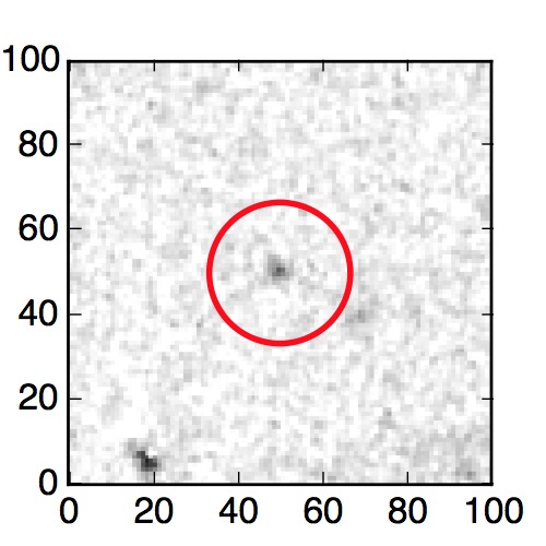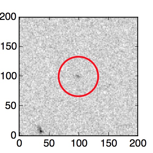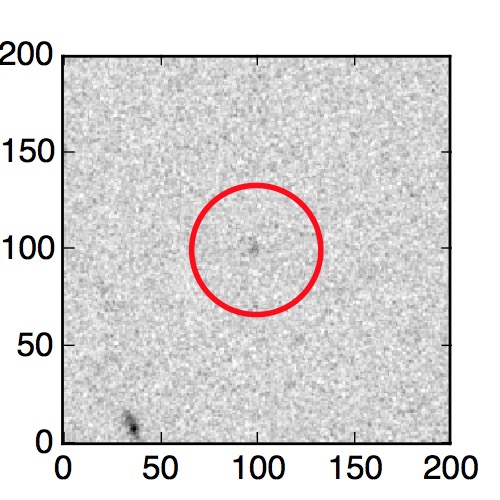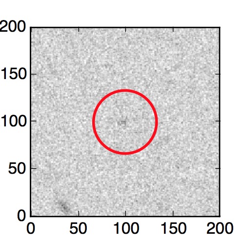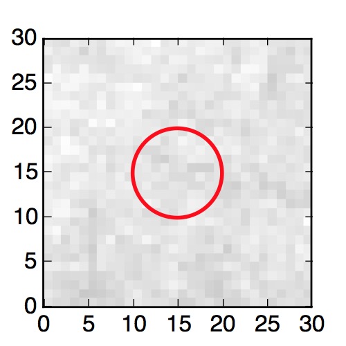 The red circle in the various panels is 1" in radius. The images are 6"x6".