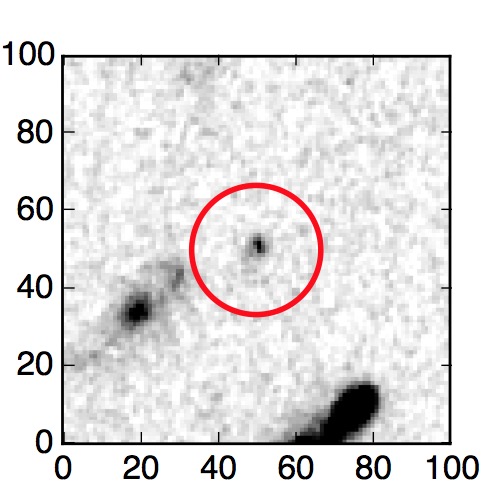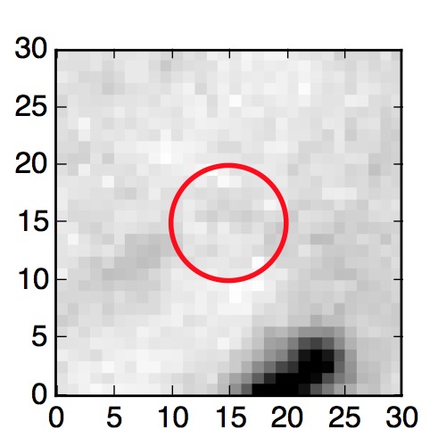 The red circle in the various panels is 1" in radius. The images are 6"x6".