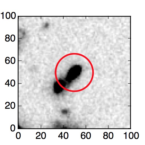 The red circle in the various panels is 1" in radius. The images are 6"x6".