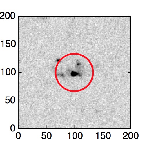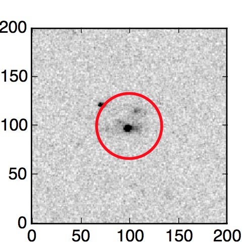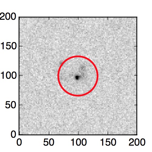 The red circle in the various panels is 1" in radius. The images are 6"x6".