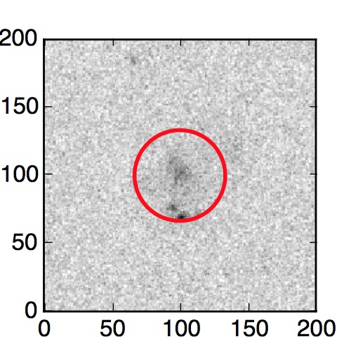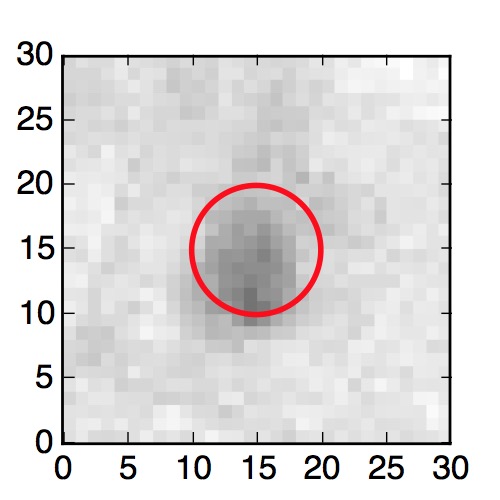 The red circle in the various panels is 1" in radius. The images are 6"x6".