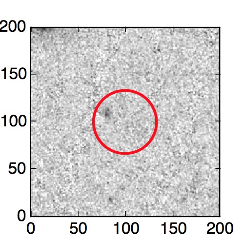 The red circle in the various panels is 1" in radius. The images are 6"x6".
