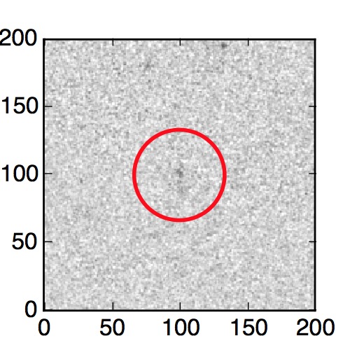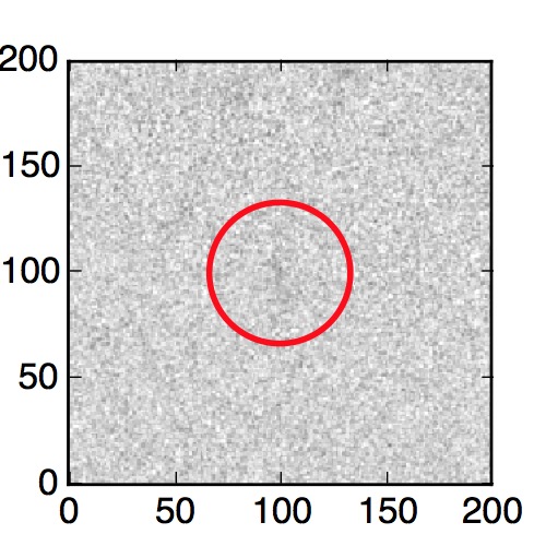 The red circle in the various panels is 1" in radius. The images are 6"x6".