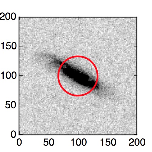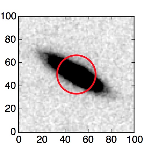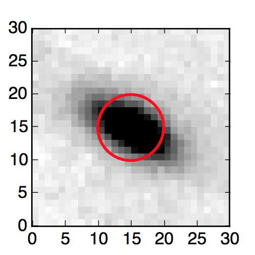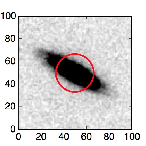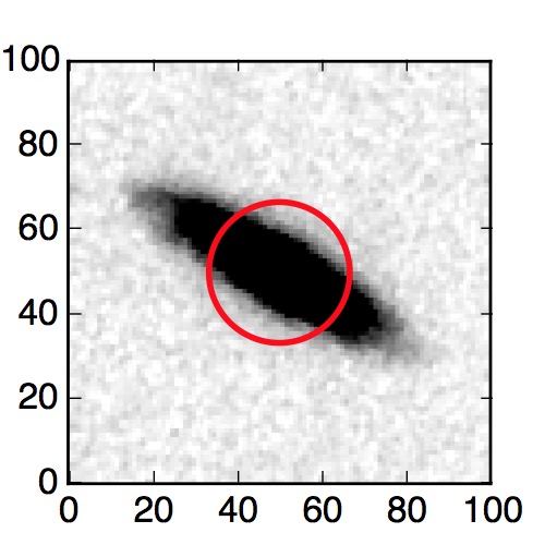 The red circle in the various panels is 1" in radius. The images are 6"x6".