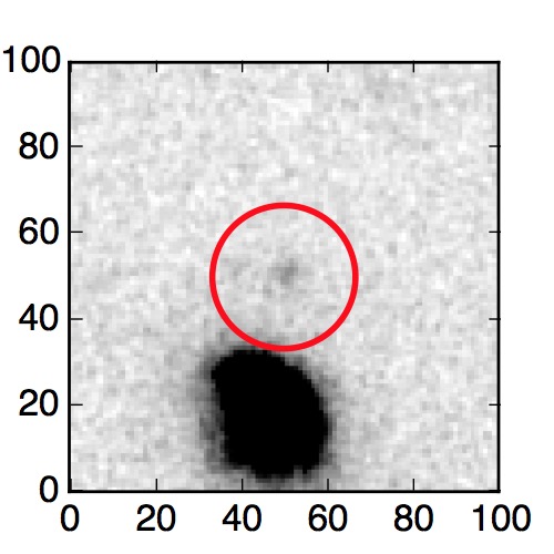 The red circle in the various panels is 1" in radius. The images are 6"x6".