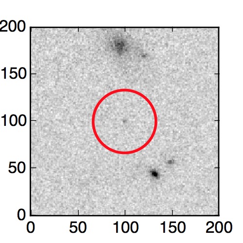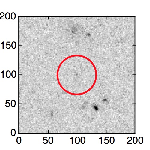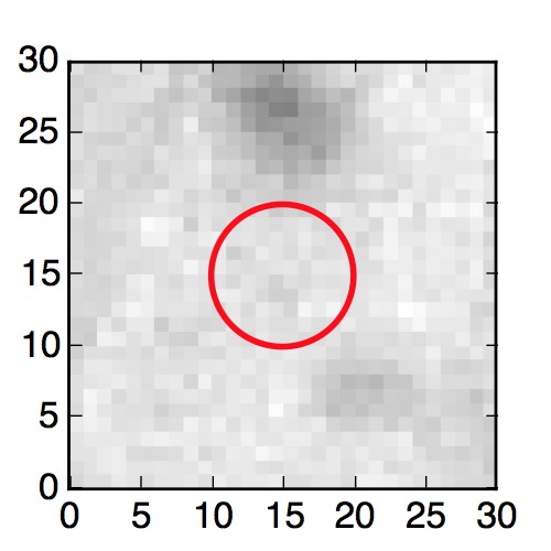 The red circle in the various panels is 1" in radius. The images are 6"x6".
