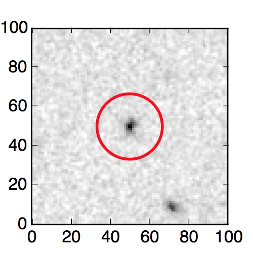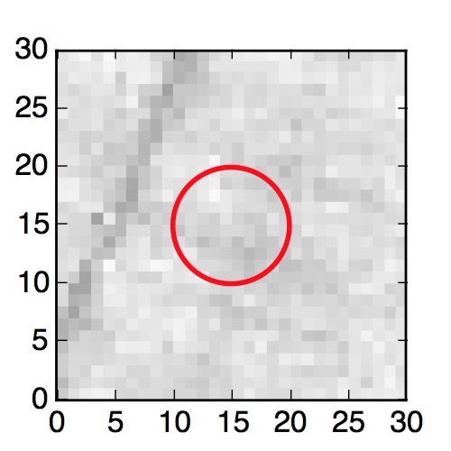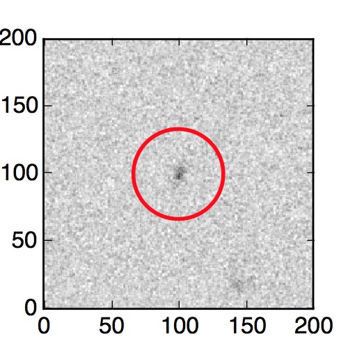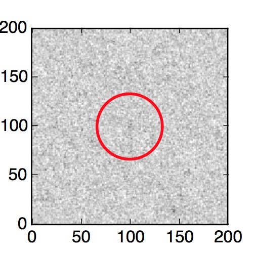 The red circle in the various panels is 1" in radius. The images are 6"x6".