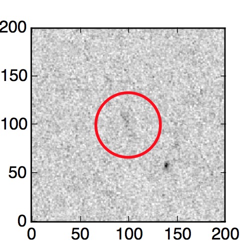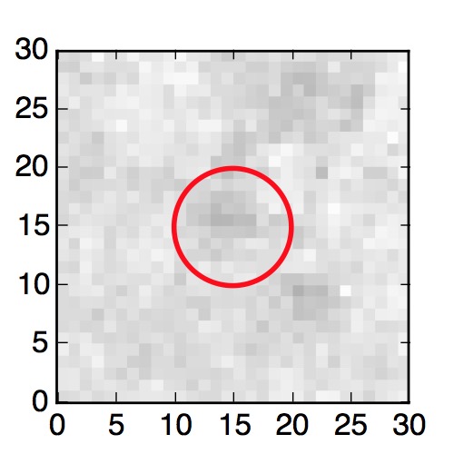 The red circle in the various panels is 1" in radius. The images are 6"x6".