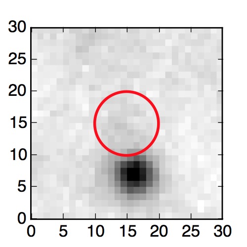 The red circle in the various panels is 1" in radius. The images are 6"x6".