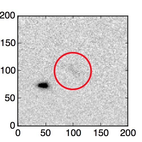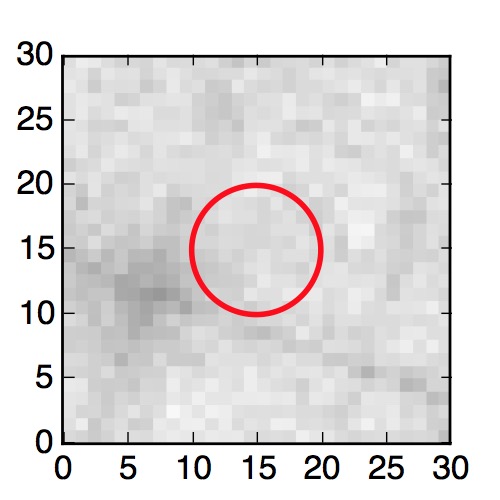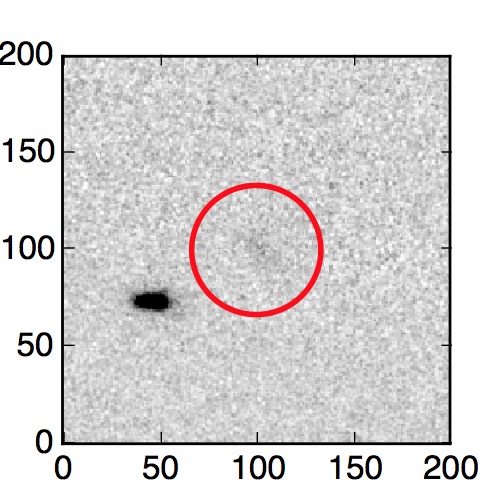 The red circle in the various panels is 1" in radius. The images are 6"x6".