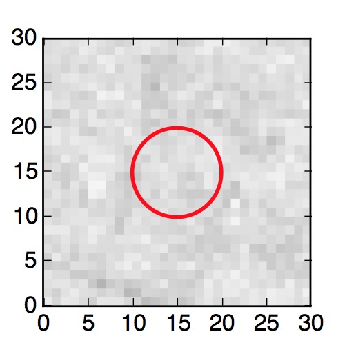 The red circle in the various panels is 1" in radius. The images are 6"x6".