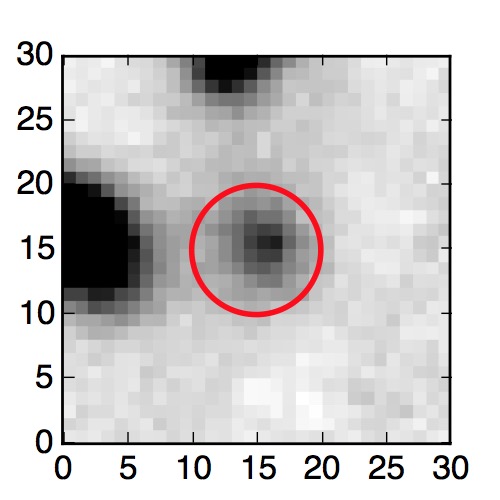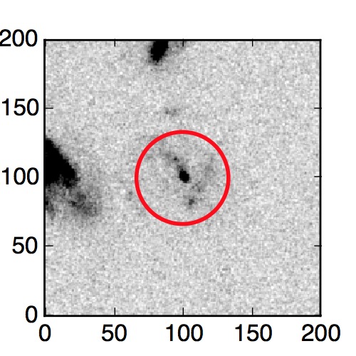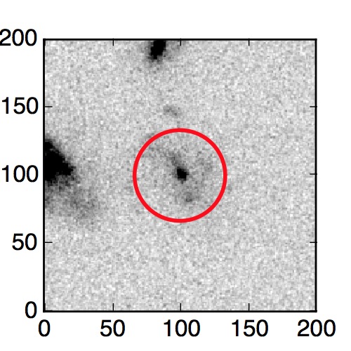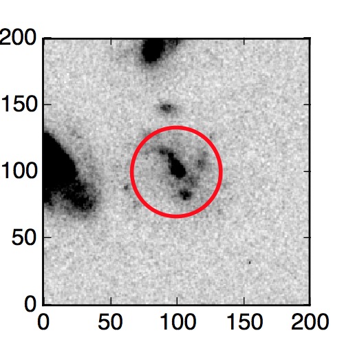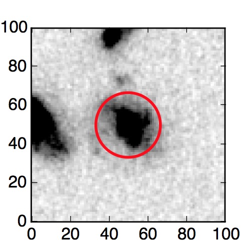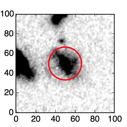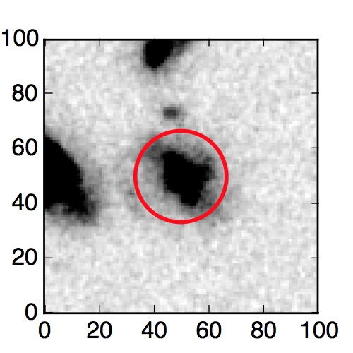 The red circle in the various panels is 1" in radius. The images are 6"x6".