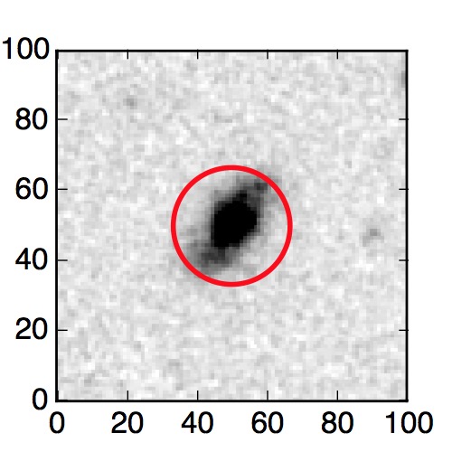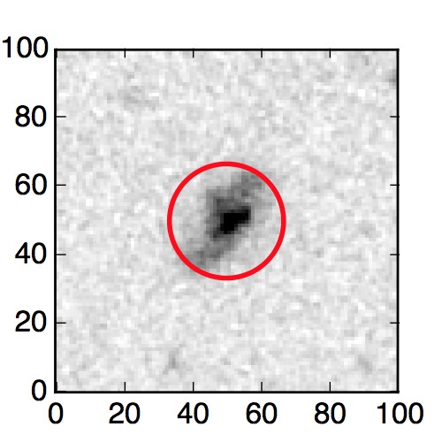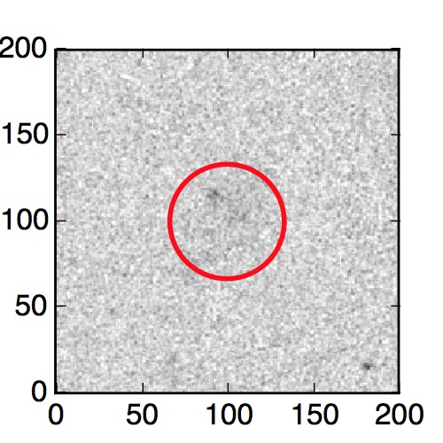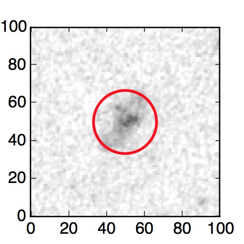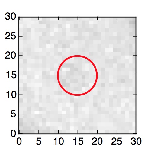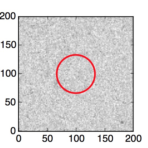 The red circle in the various panels is 1" in radius. The images are 6"x6".