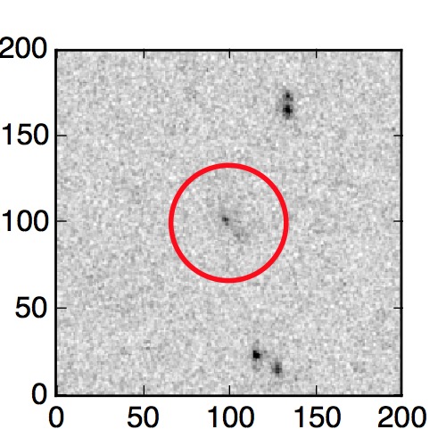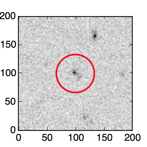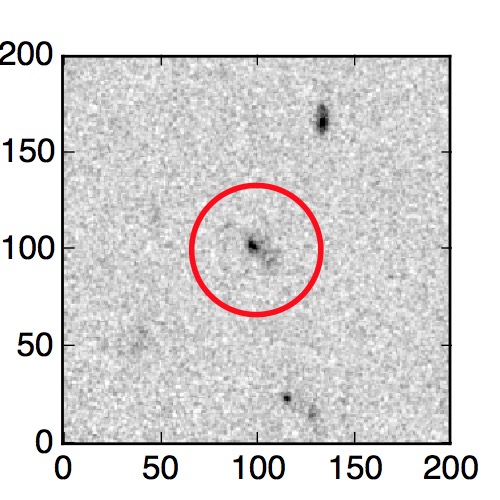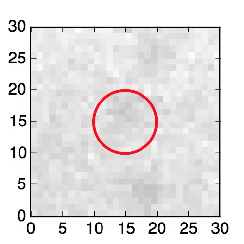 The red circle in the various panels is 1" in radius. The images are 6"x6".