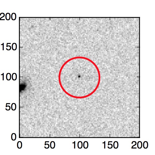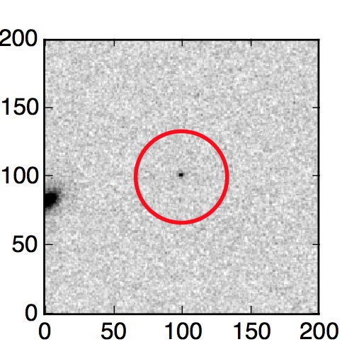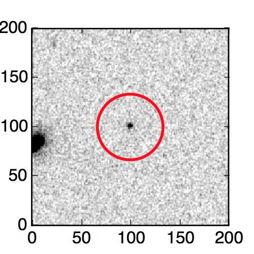 The red circle in the various panels is 1" in radius. The images are 6"x6".