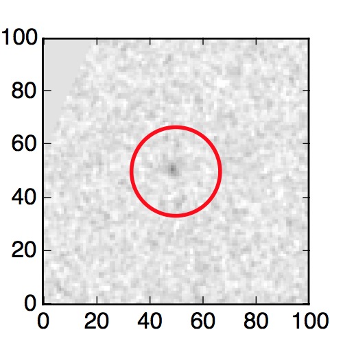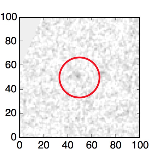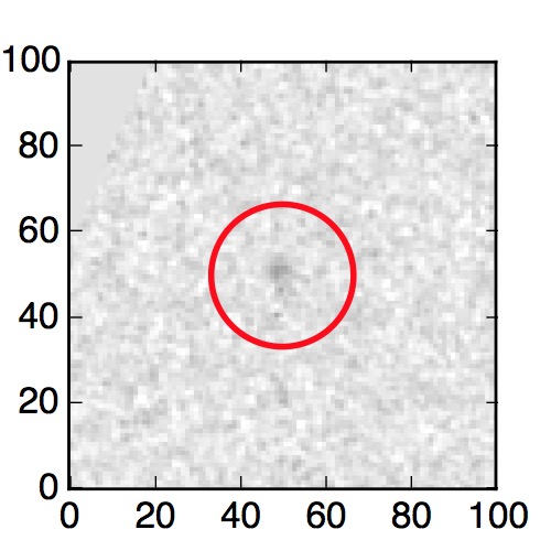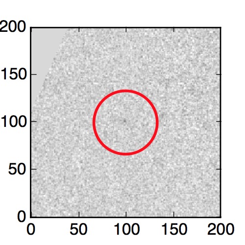 The red circle in the various panels is 1" in radius. The images are 6"x6".