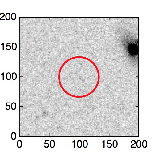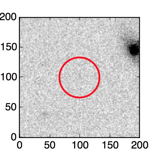 The red circle in the various panels is 1" in radius. The images are 6"x6".