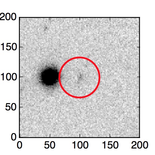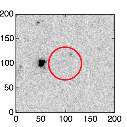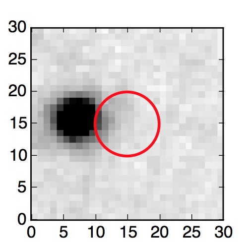 The red circle in the various panels is 1" in radius. The images are 6"x6".
