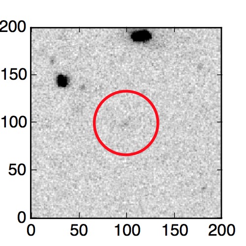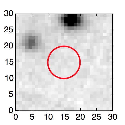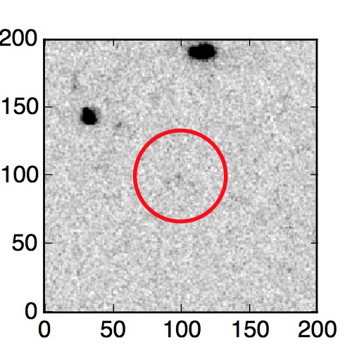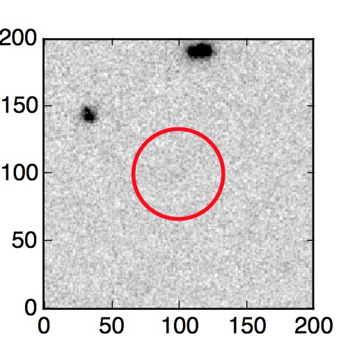 The red circle in the various panels is 1" in radius. The images are 6"x6".