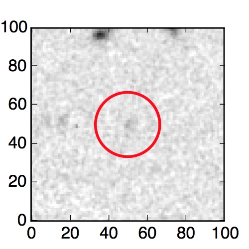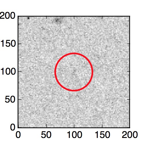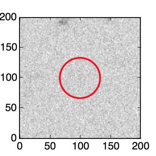 The red circle in the various panels is 1" in radius. The images are 6"x6".