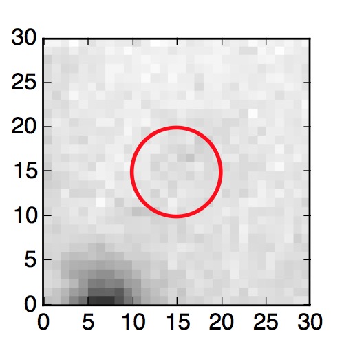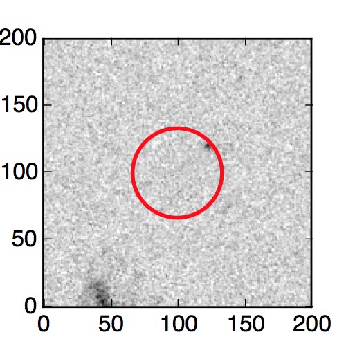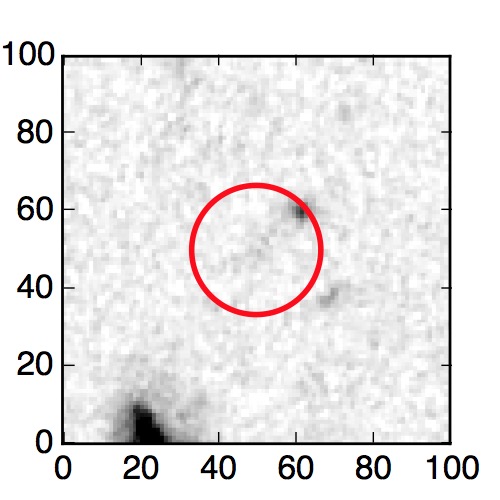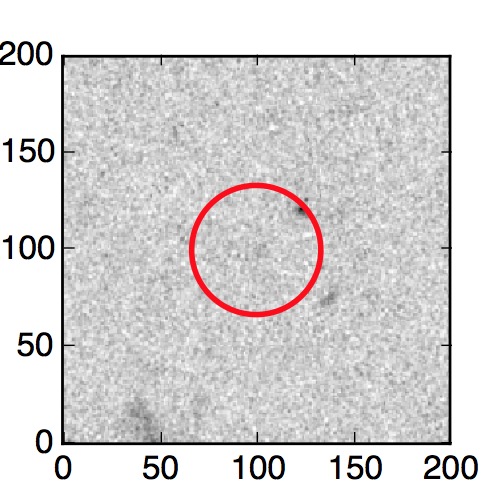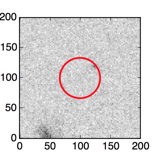 The red circle in the various panels is 1" in radius. The images are 6"x6".