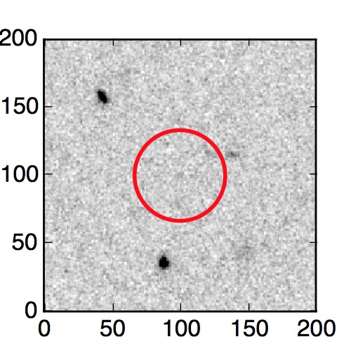 The red circle in the various panels is 1" in radius. The images are 6"x6".