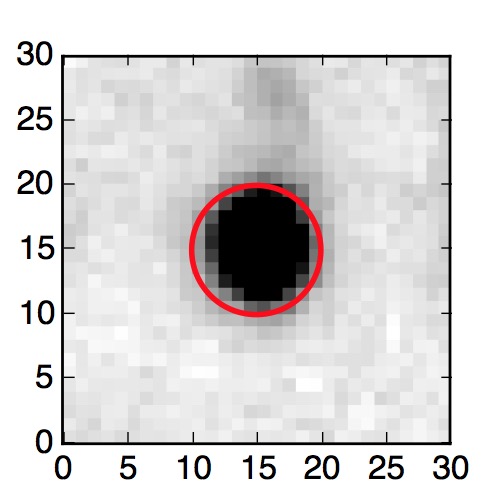 The red circle in the various panels is 1" in radius. The images are 6"x6".