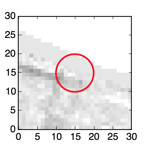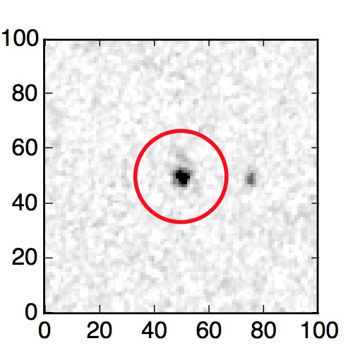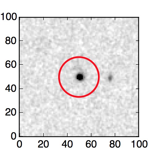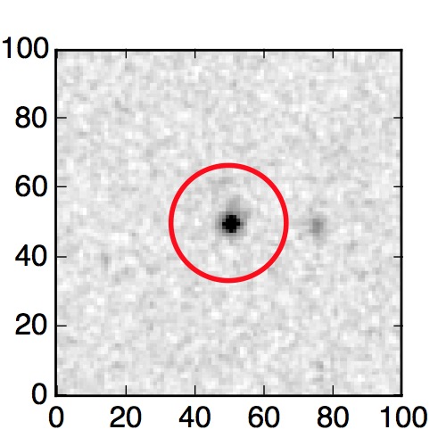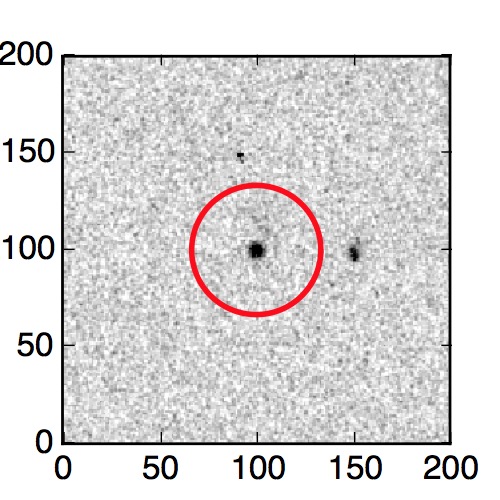 The red circle in the various panels is 1" in radius. The images are 6"x6".