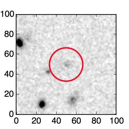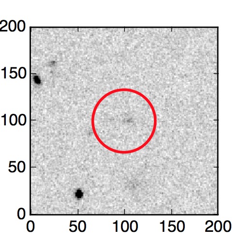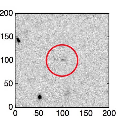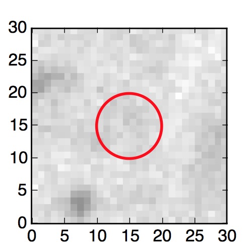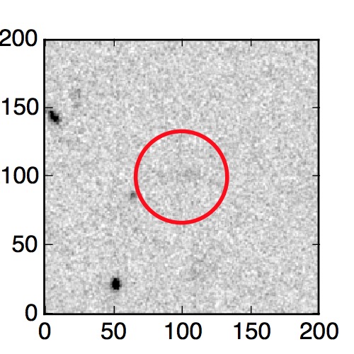 The red circle in the various panels is 1" in radius. The images are 6"x6".