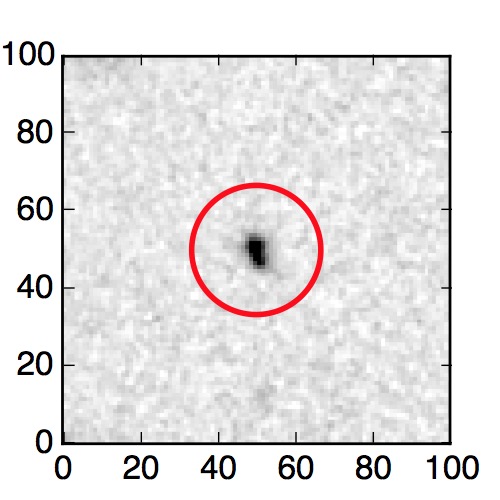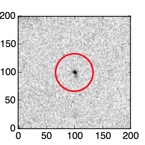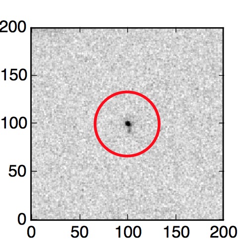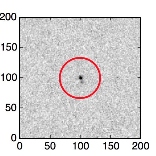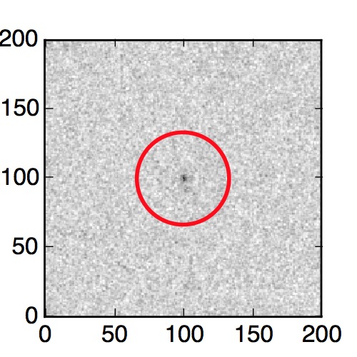 The red circle in the various panels is 1" in radius. The images are 6"x6".